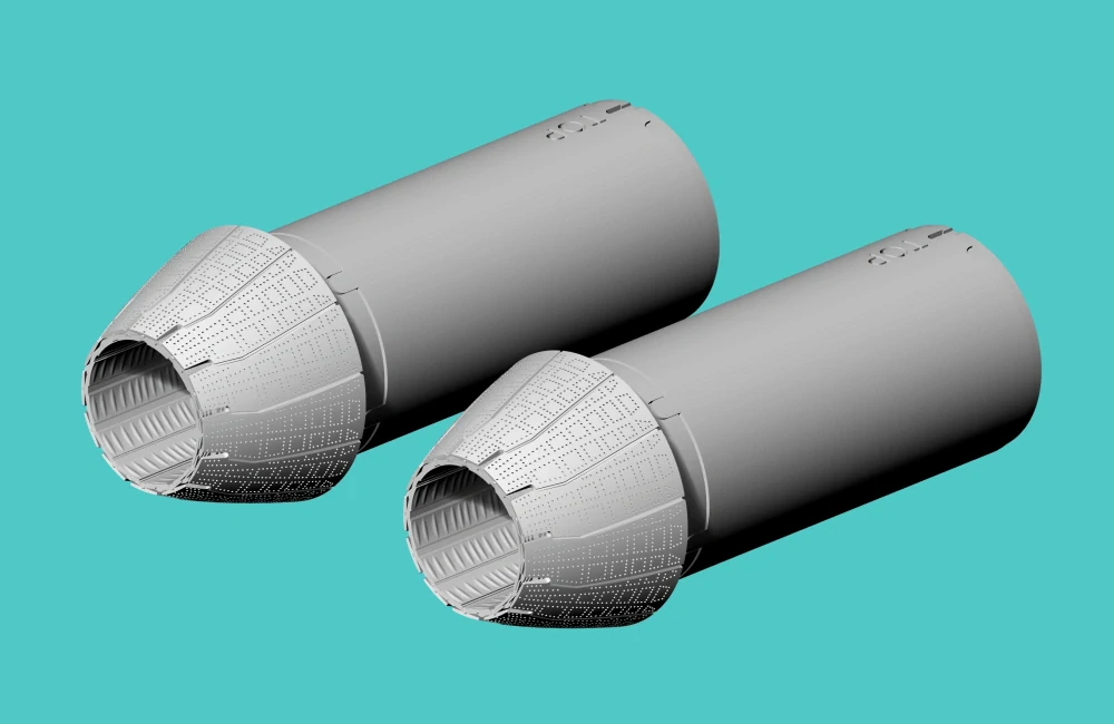 1/72 scale 3D resin printed parts of Exhaust for F-14D close version, designed for new TAMIYA kit.